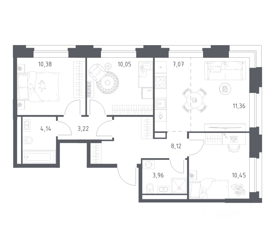 Вы можете сразу заказать мебель, технику, декор и текстиль. Уникальный интерьер подчеркнет ваш вкус. Для тех, кто хочет самостоятельно обустроить пространство с нуля, возможна сдача помещения без отделки.