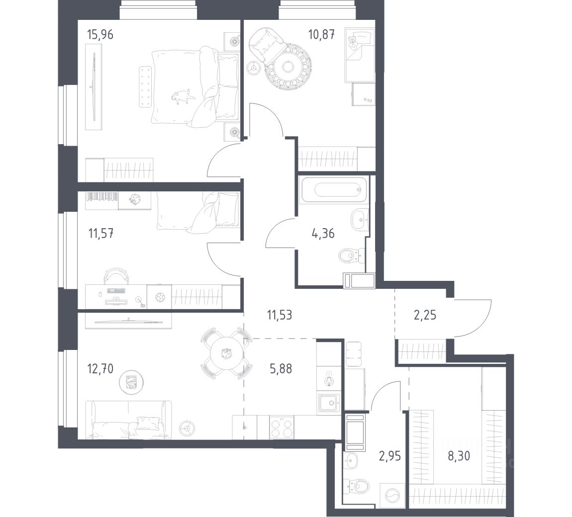 Строим кварталы для жизни с заботой о будущем. Предлагается 3-комнатная квартира комфорт-класса площадью 85,4 кв.м в корпусе 16 на 10-м этаже, в жилом комплексе "Алхимово".