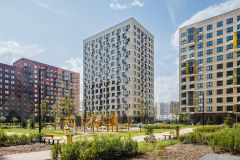 В проекте — монолитные дома высотой от 8 до 16 этажей. Фасады облицованы декоративным кирпичом естественных оттенков.