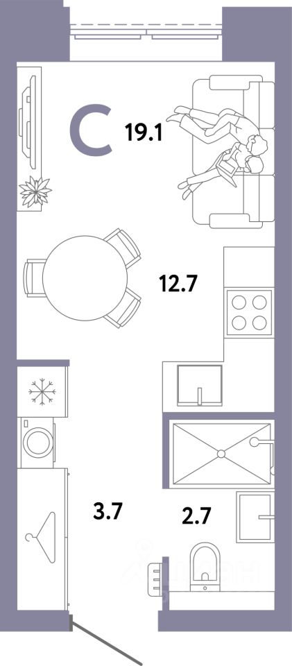 19,1 м²