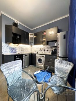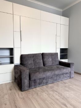 В квартире есть все для жизни: полностью укомлектованная кухня, включая посудомойку, много мест для хранения и кровать-трансформер.