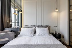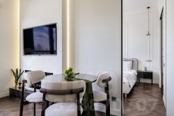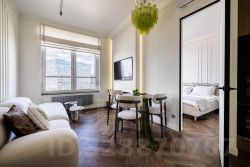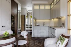 Состоит из 2 комнат: кухни-гостиной и спальни, в которой есть большая гардеробная.