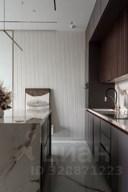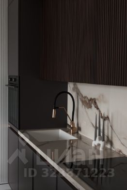 Просторная кухня полностью укомплектована встроенной техникой и мебелью. Дизайнерский ремонт и вся мебель в апартменте делалась на заказ. Бытовая техника от ведущих производителей, аско - духовой шкаф, стиральная машина, сушилка, холодильник. Функциональная планировка продумана таким образом, чтобы каждый метр работал на комфорт владельца.