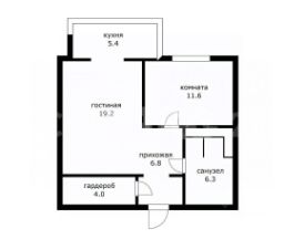 Функциональная кухня-гостиная для приема гостей. Продуманная жилая площадь 35 м2, спальня 15 м2. Оптимальное соотношение жилой и общей площади