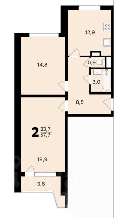 Общая площадь квартиры составляет 57.8 кв. м.