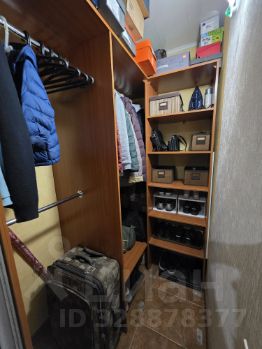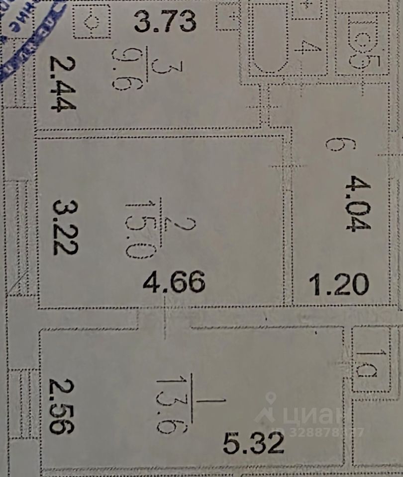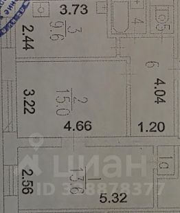 Общая площадь квартиры 46,7 кв.м: кухня — 9,6 кв.м, комнаты — 15 кв.м и 13,6 кв.м. Комнаты смежные. В прихожей большая гардеробная. Санузел совмещенный.