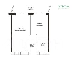 Одна отдельно изолированная комната + просторная кухня-гостиная с выходом на большую лоджию. Возведены стены.