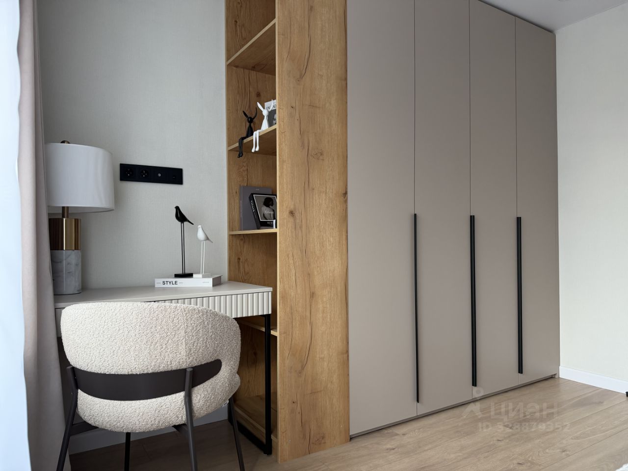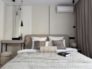 Шкафы изготовлены по индивидуальному проекту, кровать с подъемным механизмом, диван с механизмом еврокнижка, рабочая и макияжная зоны.
