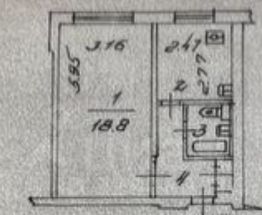 • Планировка: изолированная комната, без перепланировок, совмещенный санузел, без лоджии/балкона.