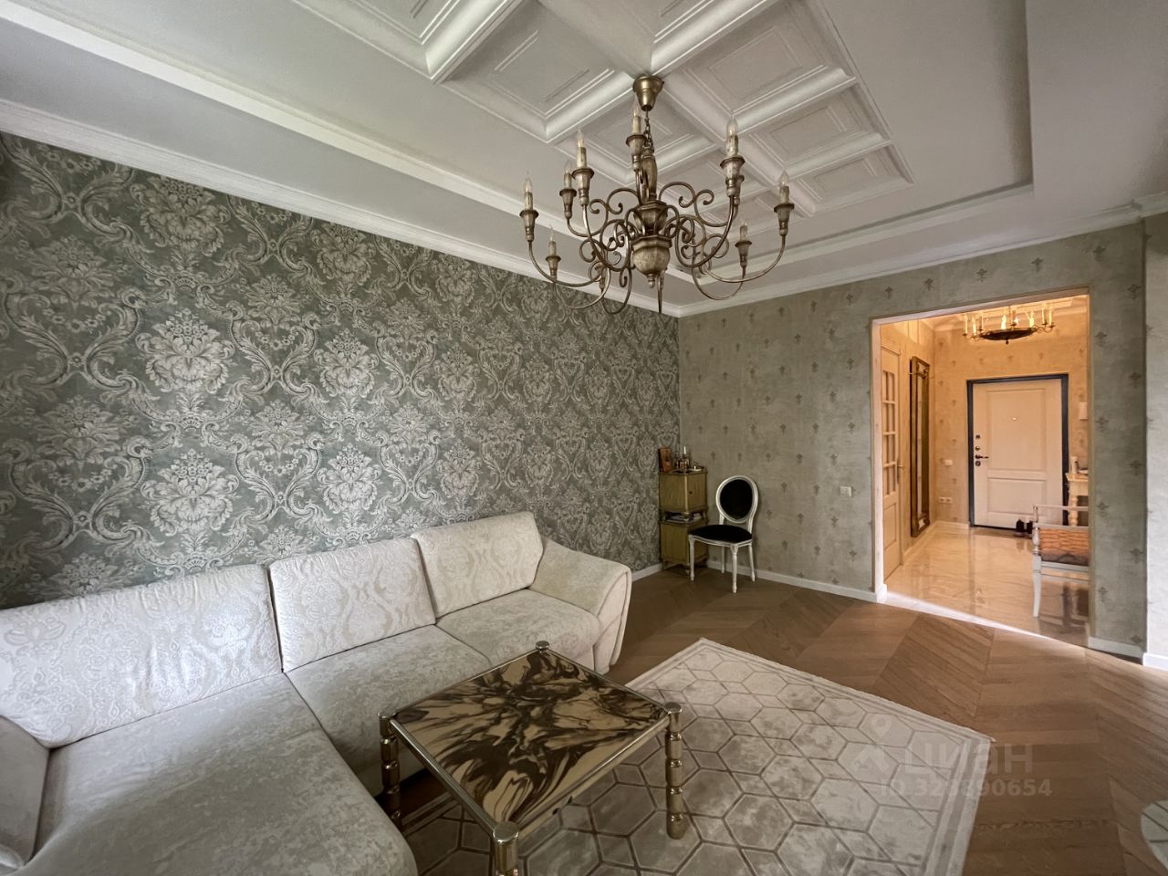 Интерьер выдержан в благородной спокойной гамме: декоративные потолки, выразительные люстры, качественные материалы отделки, красивый пол в жилой зоне с укладкой ёлочкой. В квартире выполнен капитальный ремонт с полной заменой коммуникаций.