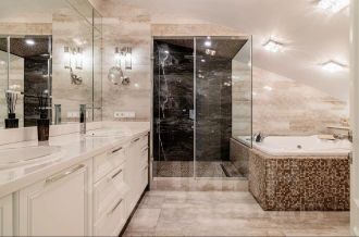 Дизайнерский ремонт с использованием материалов премиум-класса. Два санузла оснащены итальянской сантехникой, установлена джакузи.