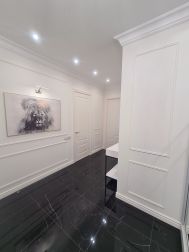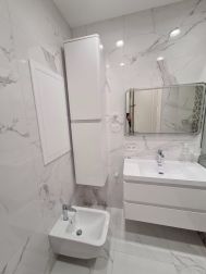 В квартире сделан дизайнерский ремонт с использованием современных и качественных материалов. Сантехника, мебель, бытовая техника - все от ведущих производителей.