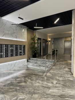 Дом находится в отличном состоянии: в нём есть три лифта и мусоропровод, а также предусмотрен пандус для удобства. Для автовладельцев предусмотрена подземная парковка, во дворе так же можно найти парковочное место. Закрытая территория ЖК, охрана, детские и спортивные площадки.