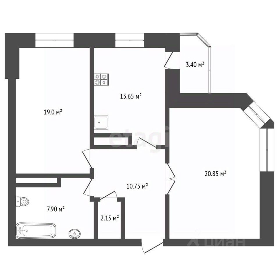 Две изолированные комнаты (20,85 и 19 м²), просторная кухня 13,65 м² и большая ванная комната (7,9 м²). Предусмотрена гардеробная и застекленный балкон. Окна выходят на солнечную сторону в тихий двор (не на детскую площадку) — в квартире всегда светло и тихо.