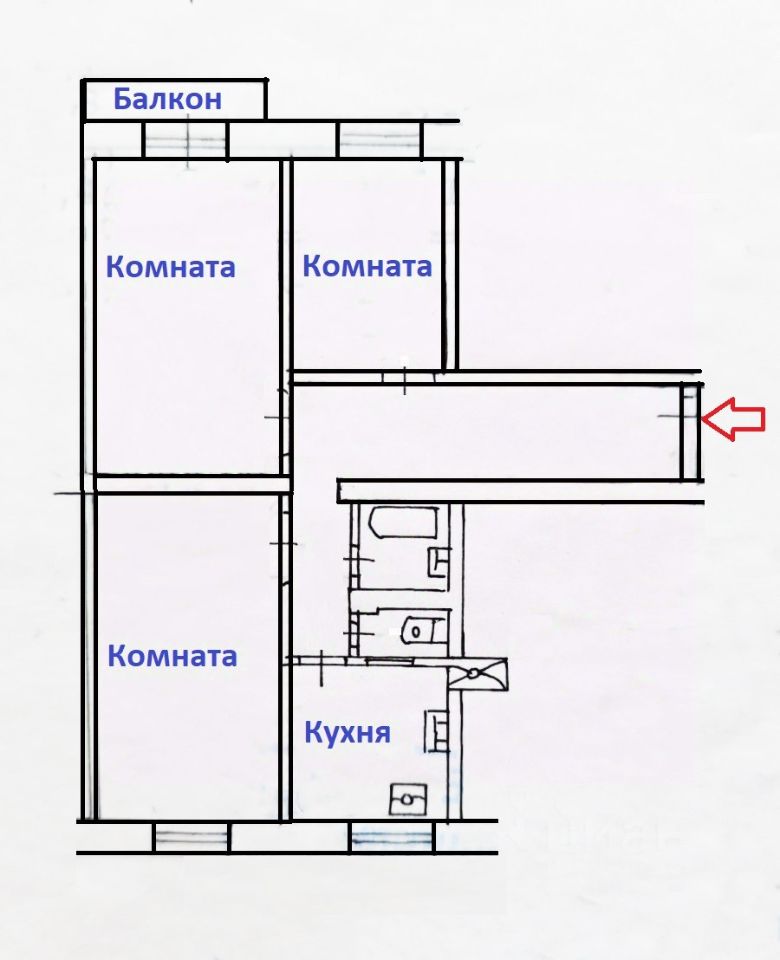 В квартире три спальни 21, 21 и 13 кв.м. Кухня 10 кв.м. Раздельный санузел с ванной. Балкон.