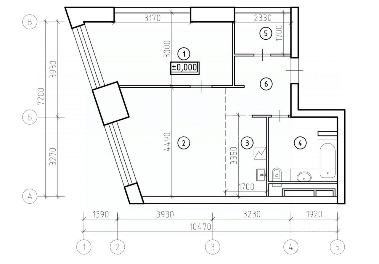 Количество комнат: 2 (студия + спальня)