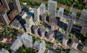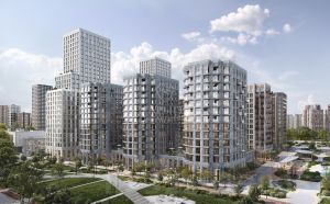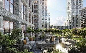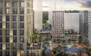Здания комплекса объединены ландшафтным двором-парком с водоемом, спортивными и детскими площадками, беседками и зелеными зонами для отдыха. Территория комплекса закрыта и приватна. Для автомобилей предусмотрен подземный паркинг с мойкой колес, усиленной связью и кладовыми.