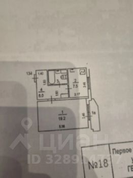 - метраж (кв.м.): комната 19,2, кухня 7,5, правильной формы, санузел совмещен.