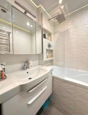 В квартире три изолированные комнаты: 2 полноценные спальни и зал с большим диваном (который тоже закрывается раздвижной дверью); ванная с с/у и отдельный второй с/у; просторная кухня со всей необходимой встраиваемой техникой (холодильник, духовка, варочная панель, посудомоечная машина, стиральная машина, вытяжка) плюс очень много местр для хранения. Квартира идеальна для проживания, все продуманно до мелочей, можно заезжать и сражу жить без каких либо вложений.