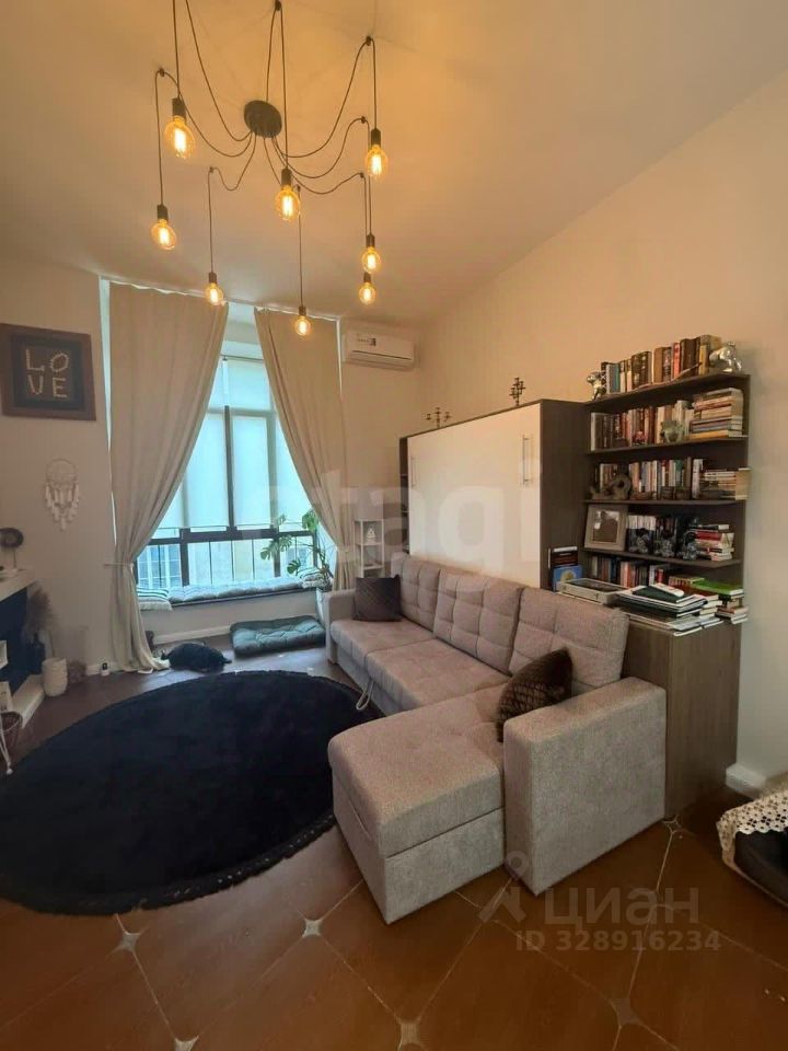 Квартира расположена на 2-м этаже (из 10). Общая площадь составляет 40,5 кв. м, жилая площадь — 27,3 кв. м, кухня - 6 кв. м. Высота потолков 4 метра. Окно выходит в тихий переулок.