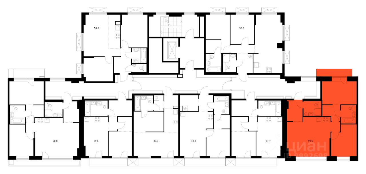 Продаётся 2-комн. квартира площадью 59,6 кв.м на 3 этаже 9 этажного дома (Корпус 1.2, Секция 2) проекта ПИК Плеханова 11. Светлый просторный подъезд на уровне земли, функциональная планировка, большие окна, c отделкой.