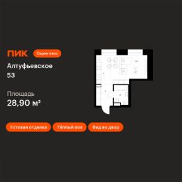 Продаётся квартира-студия площадью 28,9 кв.м на 27 этаже 32 этажного дома (Корпус 1.1, Секция 4) проекта ПИК Алтуфьевское 53. Светлый просторный подъезд на уровне земли, функциональная планировка, большие окна, c отделкой.
