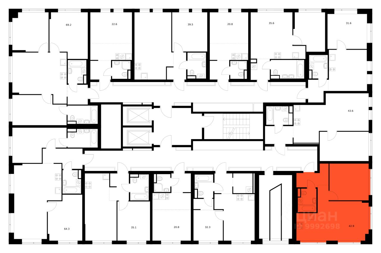 Продаётся 1-комн. квартира площадью 42,9 кв.м на 5 этаже 16 этажного дома (Корпус 2.6/1.3, Секция 3) проекта ПИК Бунинская набережная. Светлый просторный подъезд на уровне земли, функциональная планировка, большие окна, c отделкой.
