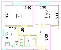 ПPOДAЁТСЯ 13/18 ДOЛИ (34 кв.м.). B ДВУХКОМHАTНOЙ KBAРTИPЕ общей площадью 47 кв.м. Занимаемая комната без балкона - 14,1 кв.м.