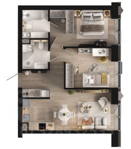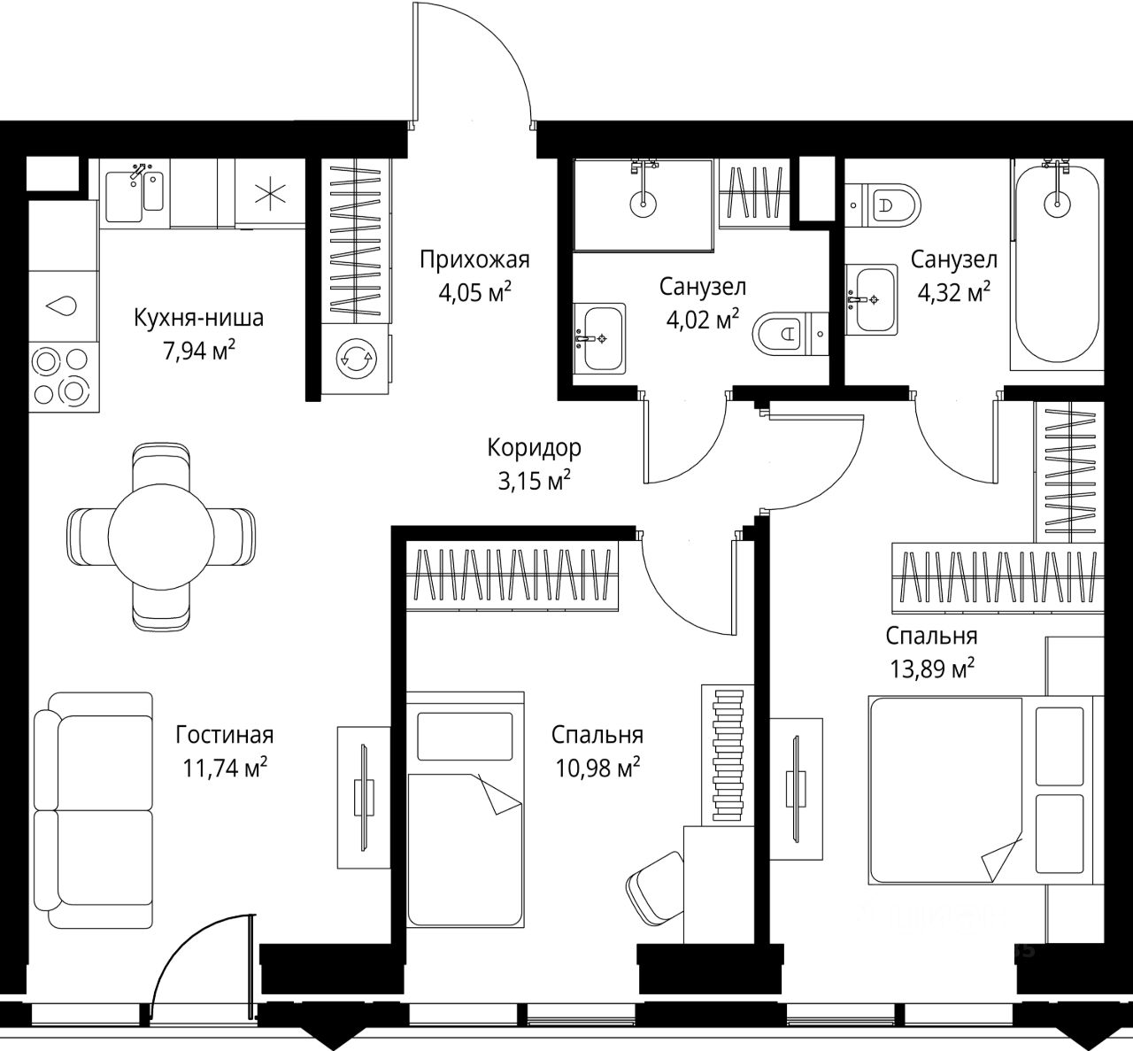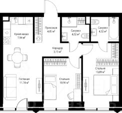 В продаже квартира площадью 60.64 м² с предчистовой отделкой на 12 этаже 55 этажного дома. Квартира расположена в корпусе Анна.
