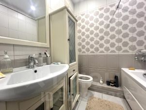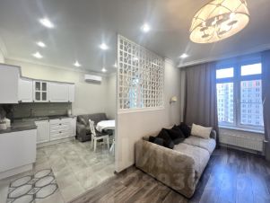 Квартира радует дизайнерским ремонтом, который подчеркивает современность и стиль. Просторная кухня площадью 12.3 кв. м оснащена всем необходимым для комфортного приготовления пищи. В квартире есть совмещенный санузел, а окна выходят на тихий двор, что обеспечивает тишину и спокойствие. Также имеется лоджия, где можно наслаждаться свежим воздухом.