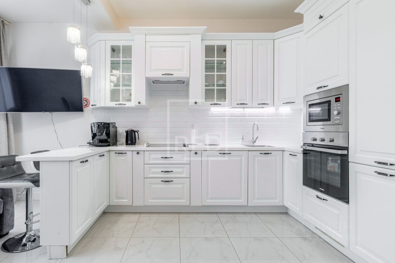 В отделке использованы лучшие натуральные материалы от мировых производителей: кухонный гарнитур от ТМ KUCHENBERG, встроенная техника Hansa (духовой шкаф, микроволновая печь, варочная панель, вытяжка,посудомоечная машина), холодильник Liebherr; теплые полы, кондиционеры на кухне и в комнате, спальный гарнитур Лазурит, мебель Hoff, сантехника Rocco и Grohe. Все в идеальном состоянии, регулярно на обслуживании.