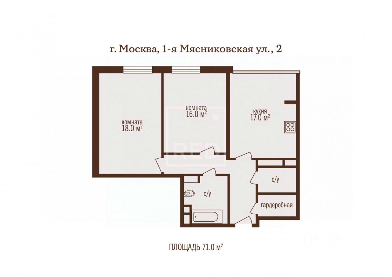 Грамотная планировка включает в себя просторную кухню-гостиную 17 кв.м., изолированные две комнаты (18 и 16 кв.м.), гардеробная при входе, 2 сан.узла, просторные коридоры.