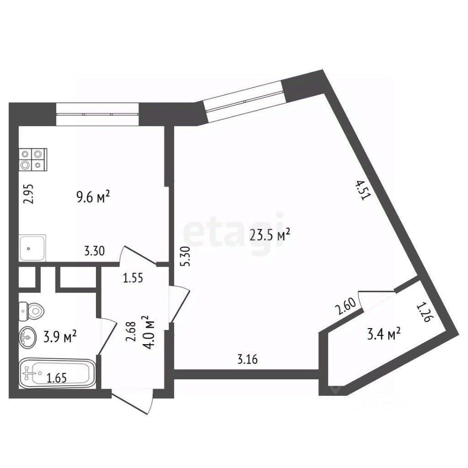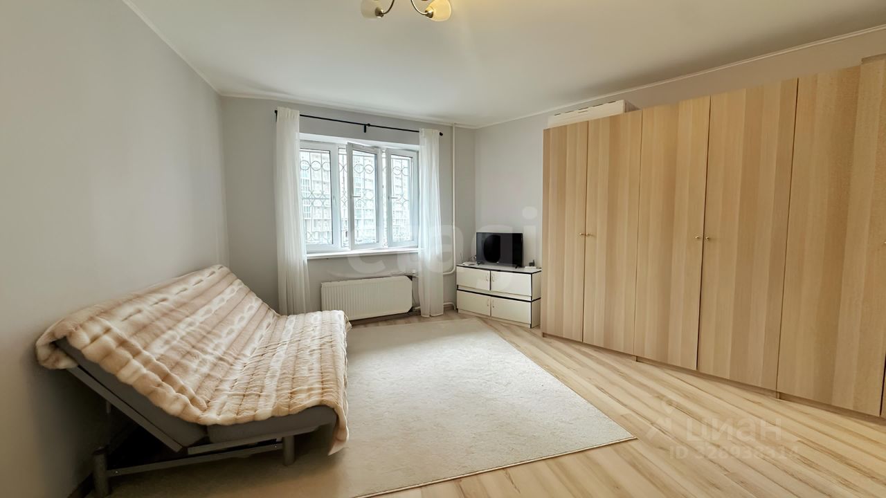 Квартира с ремонтом полностью готова к жизни: есть вся необходимая мебель и техника. Планировка включает жилую площадь 23,5 м², просторную кухню 9,6 м², кладовую комнату, которую можно адаптировать под гардеробную, и совмещенный санузел. Высота потолков — 2,8 м. Окна выходят во двор, на солнечную северо-восточную сторону.