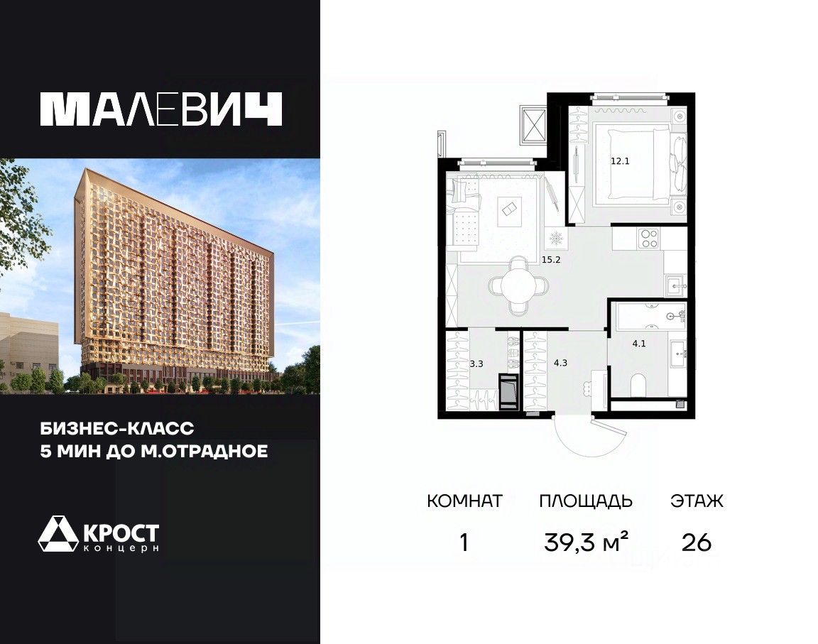 Без отделки. Срок сдачи: 2 кв. 2026 г.