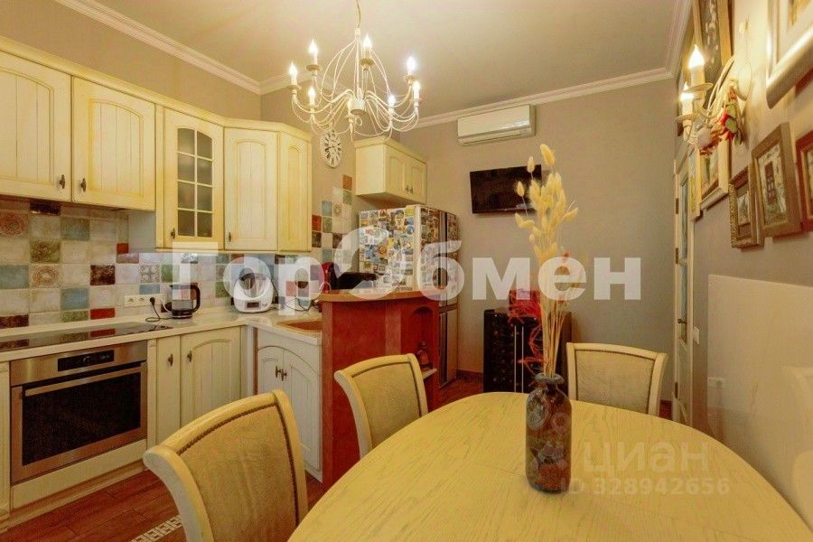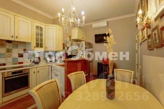 Квартира в отличном состоянии, на полу паркет и керамогранит, теплые полы на кухне в санузлах, на лоджии, в прихожей; дорогие двери из лиственницы с эксклюзивными витражами ручной работы. На кухне встроенный итальянский гарнитур.