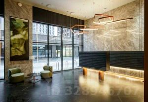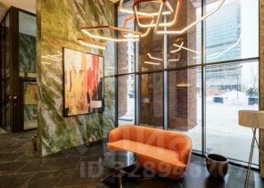 Вход в корпуса осуществляется по биометрии или электронному ключу. Далее вы попадаете в двухуровневое лобби с зонами отдыха и удобными колясочными.