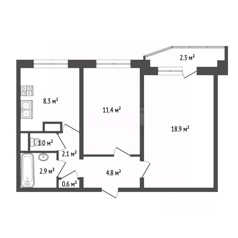 Комнаты изолированные: 18.9 и 11.4 м2,