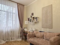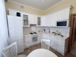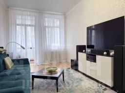 Просторная, светлая и ухоженная квартира со стильным интерьером в светлых тонах и современной отделкой из качественных материалов. Высокие потолки создают ощущение лёгкости и простора.