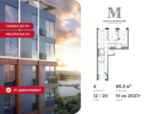 Продаётся 4-к квартира 85,3 кв.м. в ЖК "Михалковский" на 12-м этаже 20 этажного дома.