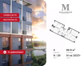 Продаётся 4-к квартира 89,9 кв.м. в ЖК "Михалковский" на 9-м этаже 20 этажного дома.