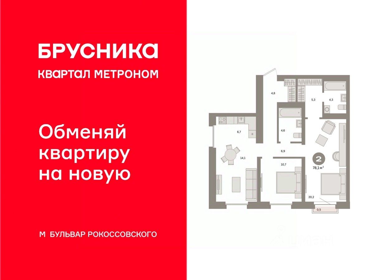В проекте доступна программа обмена: мы выкупим вашу старую квартиру, направим средства на оплату новой и сопроводим сделку. Доступны опции: проживание до 30 месяцев, закрытие ипотеки, выделение детских долей, получение средств на ремонт. квартиры в нашей базе: КВМ-КВМ01-7-7.21.5.