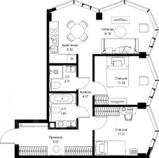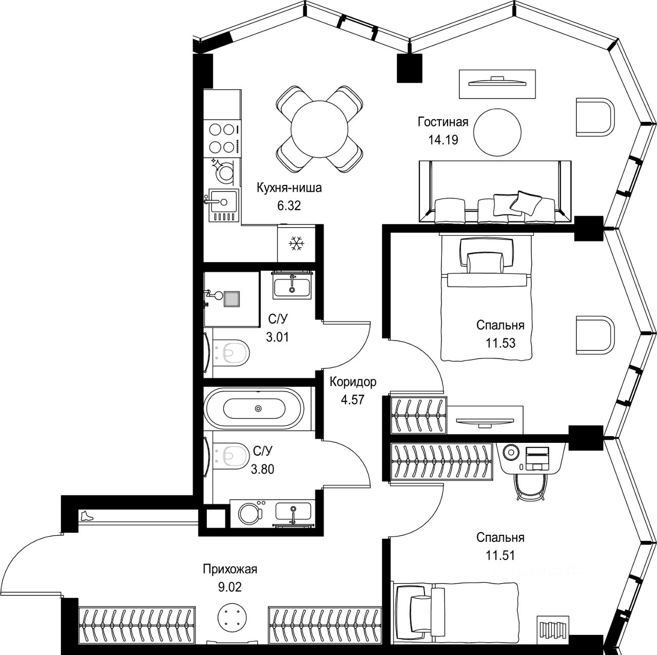 Продаётся 2-комнатная квартира общей площадью 63.95 м² без отделки в доме премиум-класса МИРА на 6-м этаже 24 этажного дома. Квартира расположена в корпусе 3.