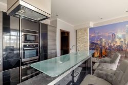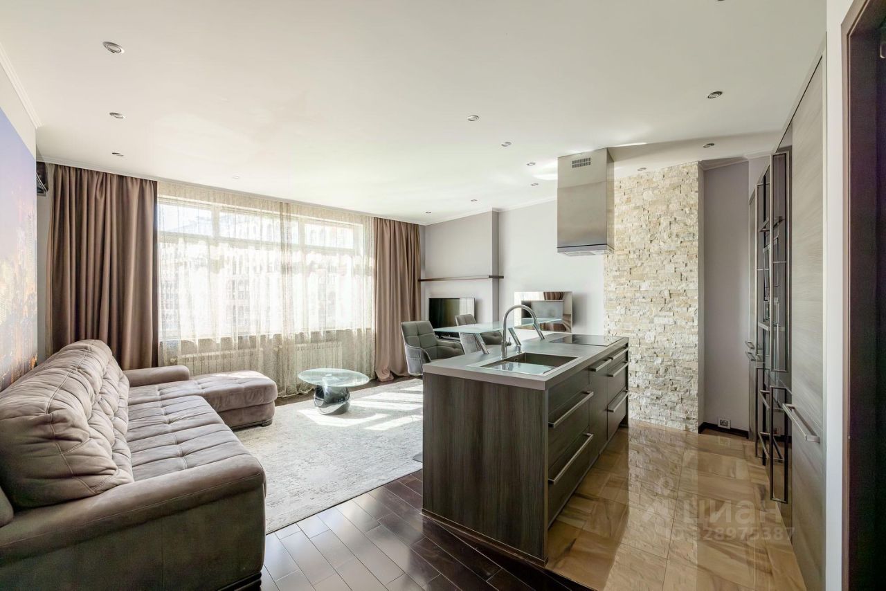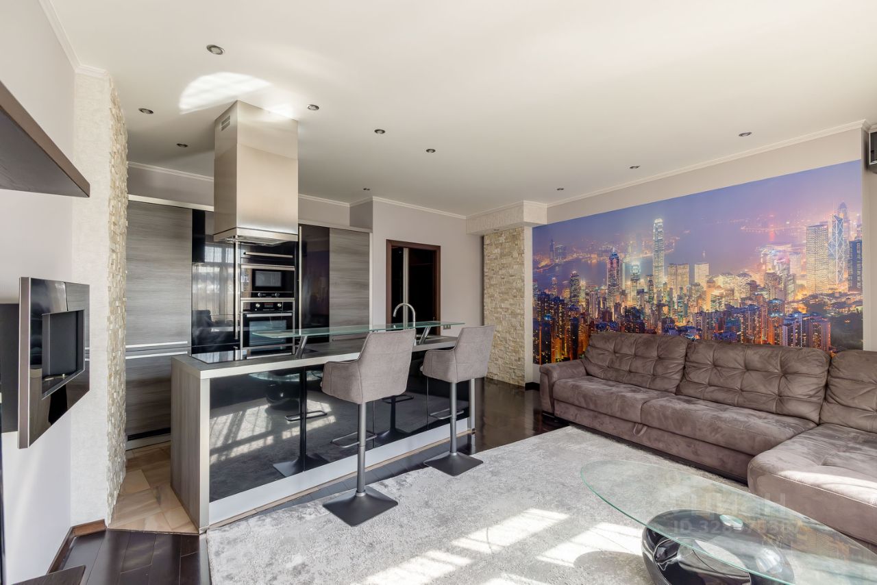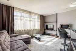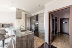 В апартаментах сделан качественный ремонт. Установлена немецкая Кухня Nolte со встроенной техникой. В гостиной диван со спальным местом 200/200, телевизор, биокамин Decoflame, кондиционер Mitsubishi. В ванной: стиральная машина, бойлер, душевая кабина и инфракрасная сауна. Большая гардеробная изготовлена по индивидуальному заказу, Полы - итальянский керамогранит и дубовый паркет. Тёплый пол в коридоре и в ванной комнате. Несущие колонны декорированы натуральным кварцем. Сейфовая металлическая дверь со встроенным видеомонитором.