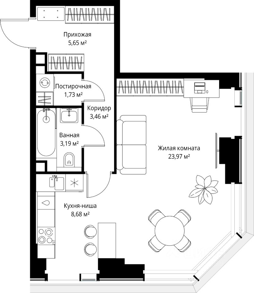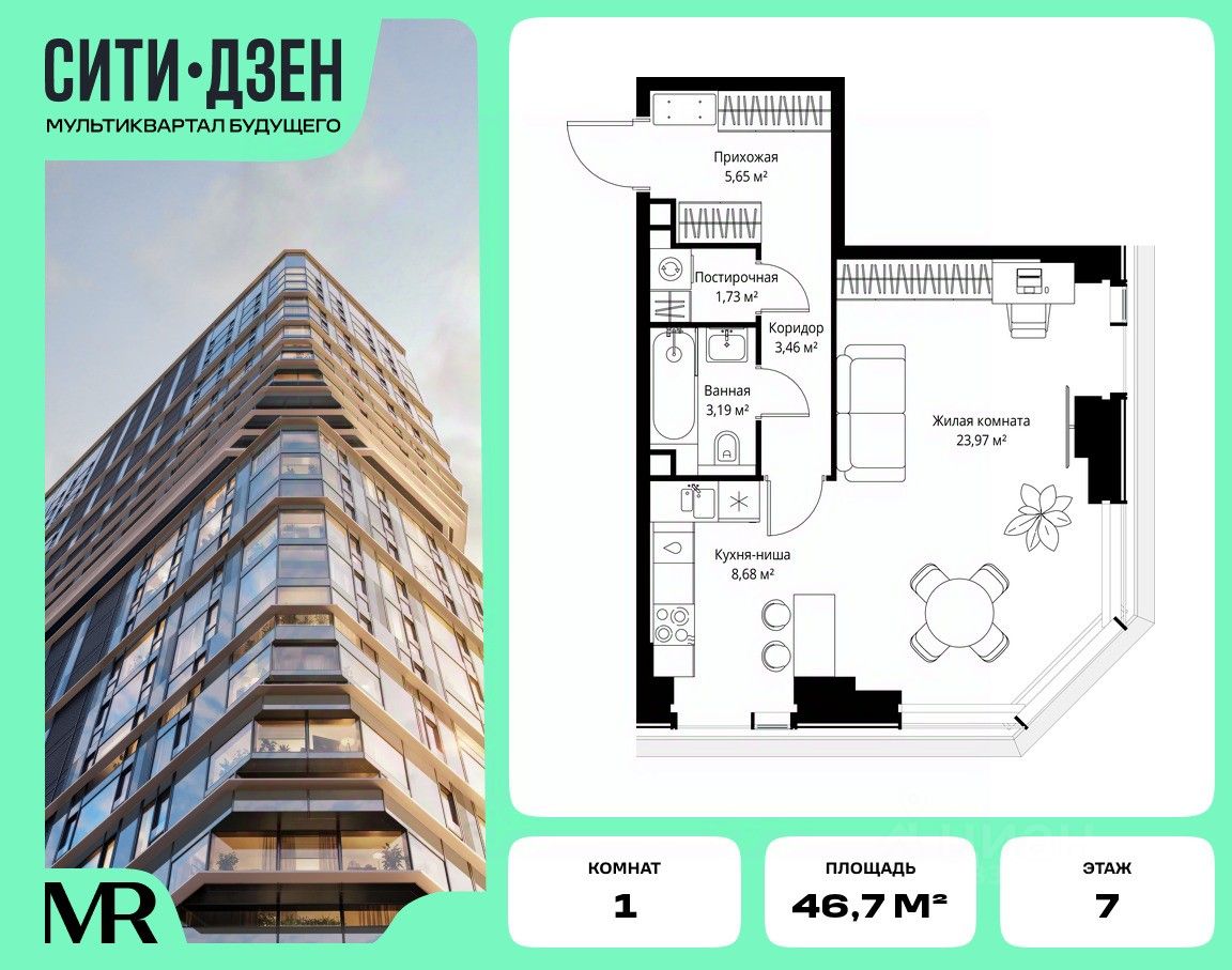 Продается 1-комнатная квартира от застройщика в жилом мультиквартале СИТИДЗЕН на 7-м этаже. Общая площадь лота составляет 46.68 м²