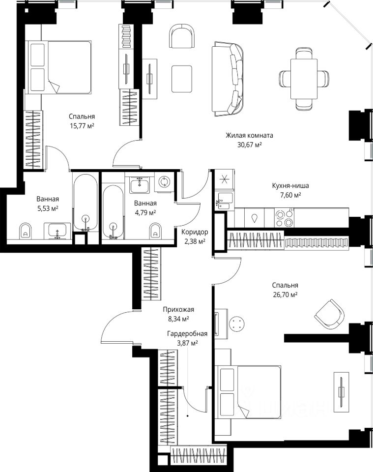 Продается 3-комнатная квартира от застройщика в жилом мультиквартале СИТИДЗЕН на 23-м этаже. Общая площадь лота составляет 105.65 м²