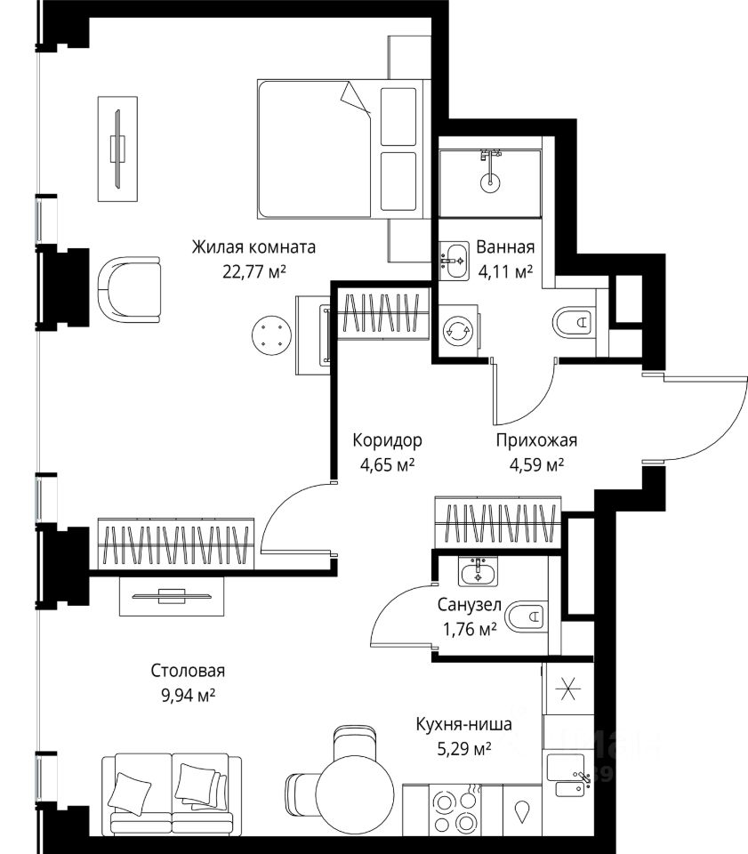 Продается 1-комнатная квартира от застройщика в жилом мультиквартале СИТИДЗЕН на 55-м этаже. Общая площадь лота составляет 53.11 м²