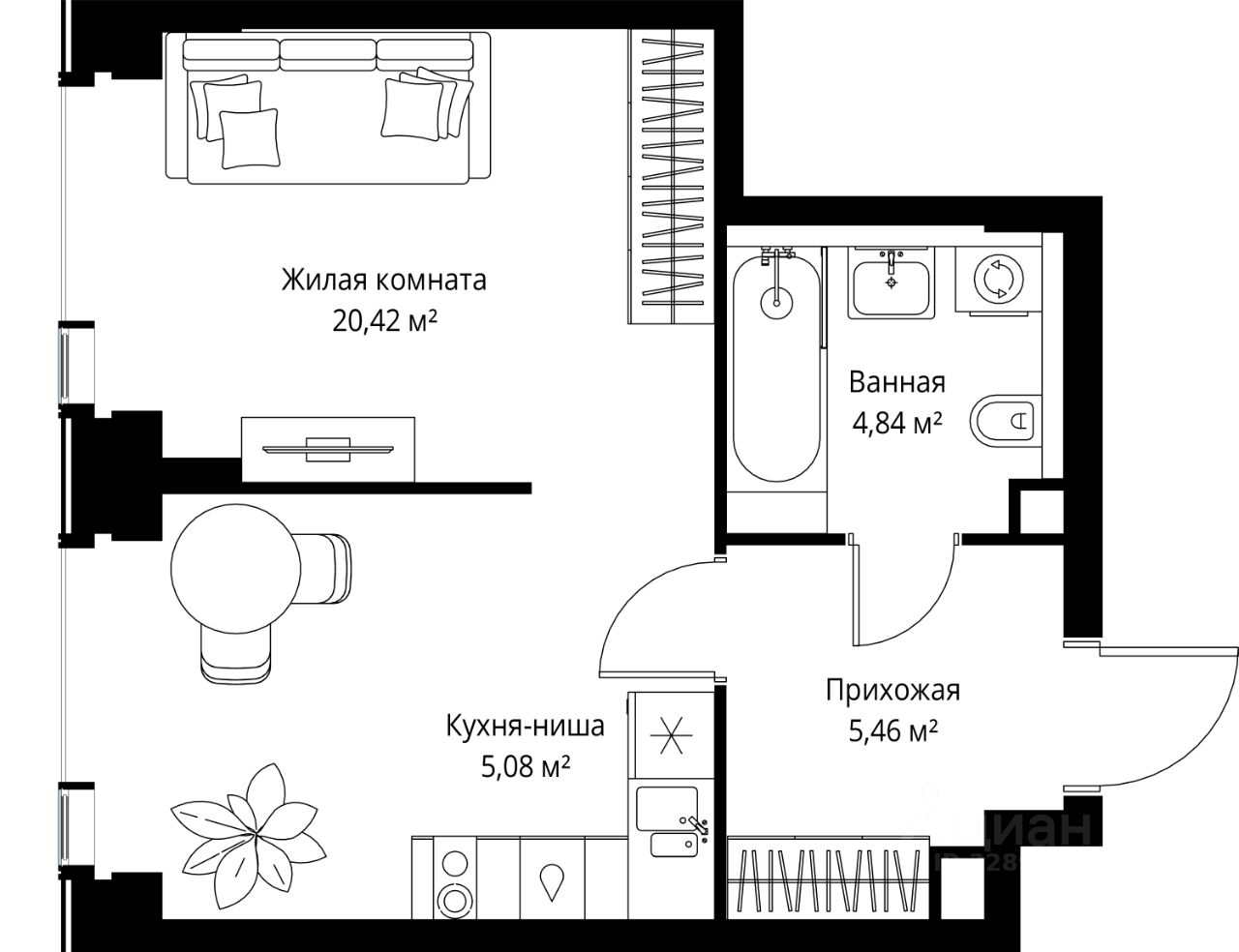 Продается 1-комнатная квартира от застройщика в жилом мультиквартале СИТИДЗЕН на 19-м этаже. Общая площадь лота составляет 35.80 м²