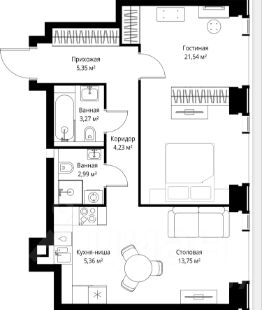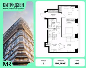 Продается 1-комнатная квартира от застройщика в жилом мультиквартале СИТИДЗЕН на 46-м этаже. Общая площадь лота составляет 56.49 м²
