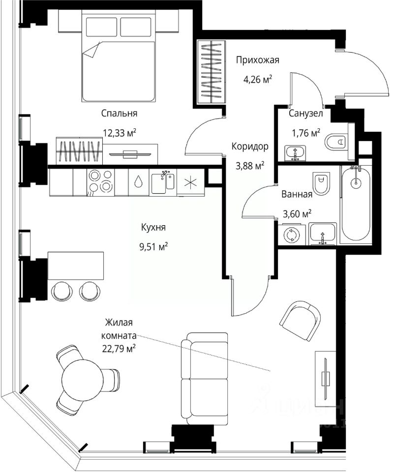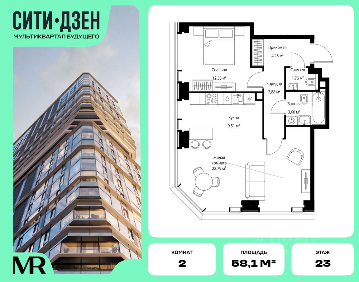 Продается 2-комнатная квартира от застройщика в жилом мультиквартале СИТИДЗЕН на 23-м этаже. Общая площадь лота составляет 58.13 м²