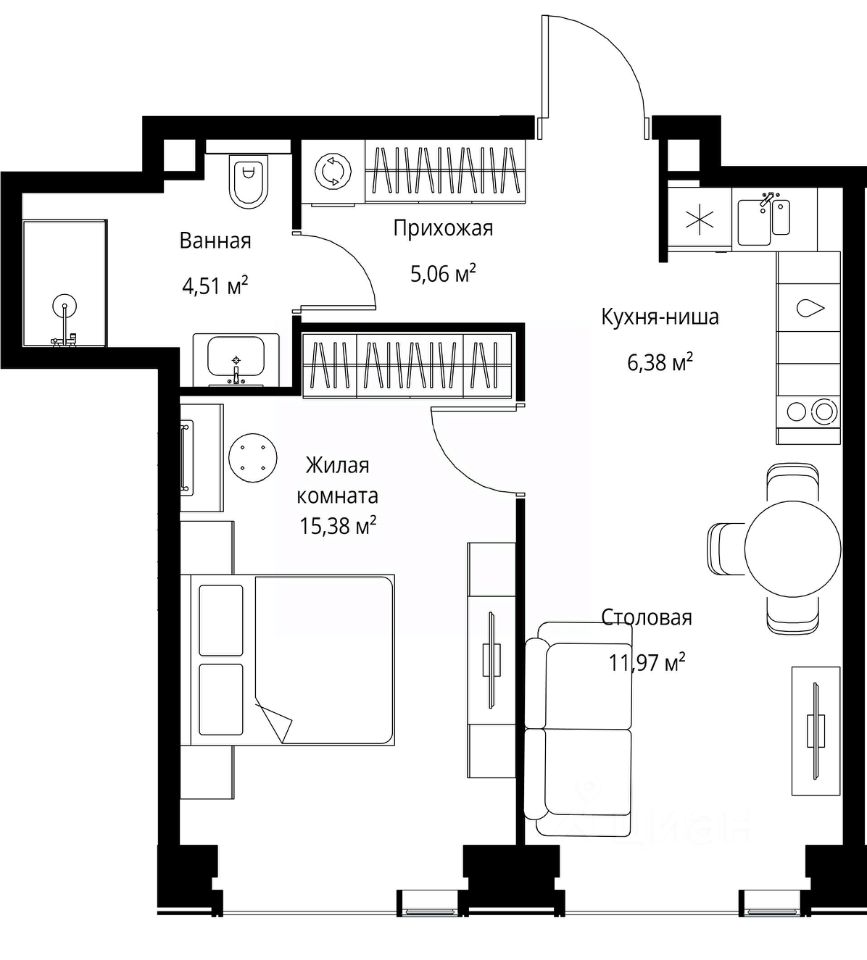 Продается 1-комнатная квартира от застройщика в жилом мультиквартале СИТИДЗЕН на 10-м этаже. Общая площадь лота составляет 43.30 м²